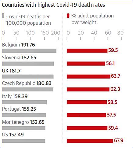 Smrt na covid řádí v zemích, kde jsou lidé obtloustlí. Včetně ČR.