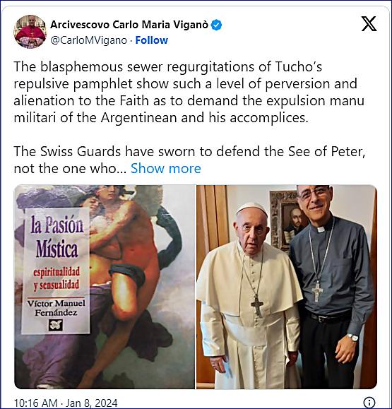 Viganovi, italském duchovním, který se často dostává do sporu s papežem