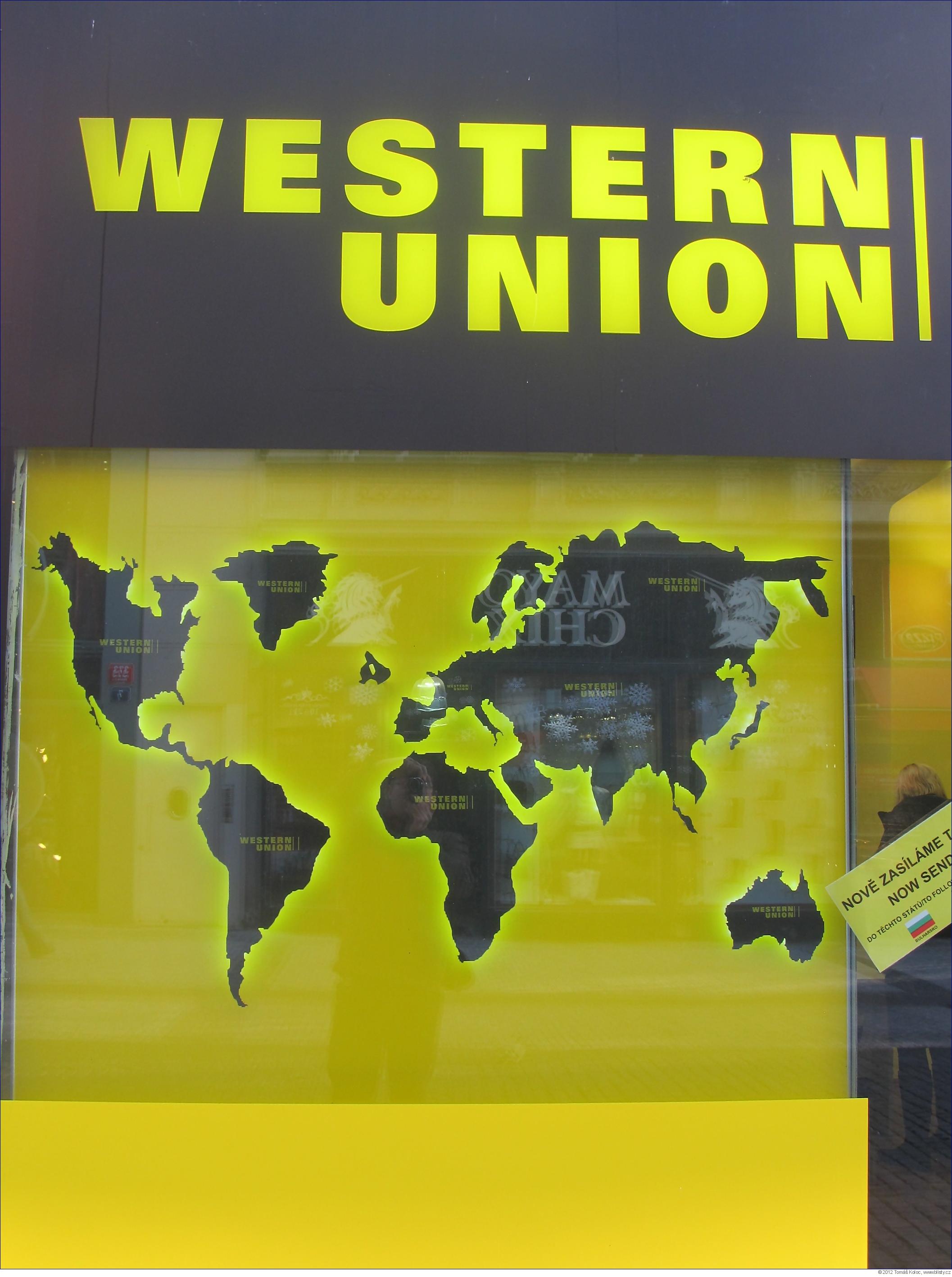 Reklamou umístěnou ve výloze svého zákaznického střediska v samém centru Prahy chtěla bankovní společnost Western union zřejmě dokázat, jak by si představovala svět pod svou vládou.