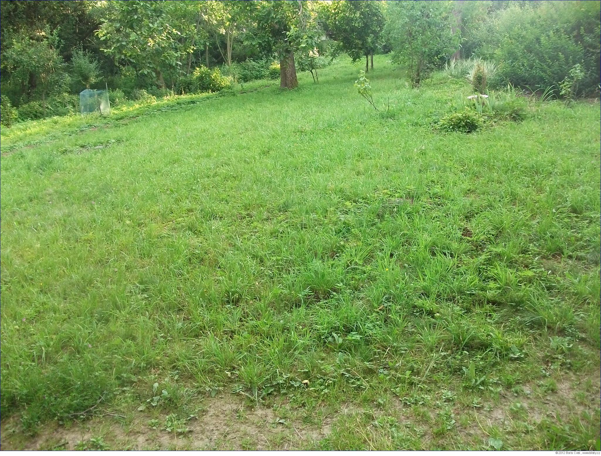 Někdy se lidé ptají, co dělat s trávou. My ji dáváme na kompost. Když se zahrada neseká sekačkou, ale kosou, můžete na ní do půlky července vidět celou paletu lučních květů, které jsou barevné a které lákají barevné motýly. Vysoká tráva se potom snadno seče kosou a do konce září už moc nevyroste.