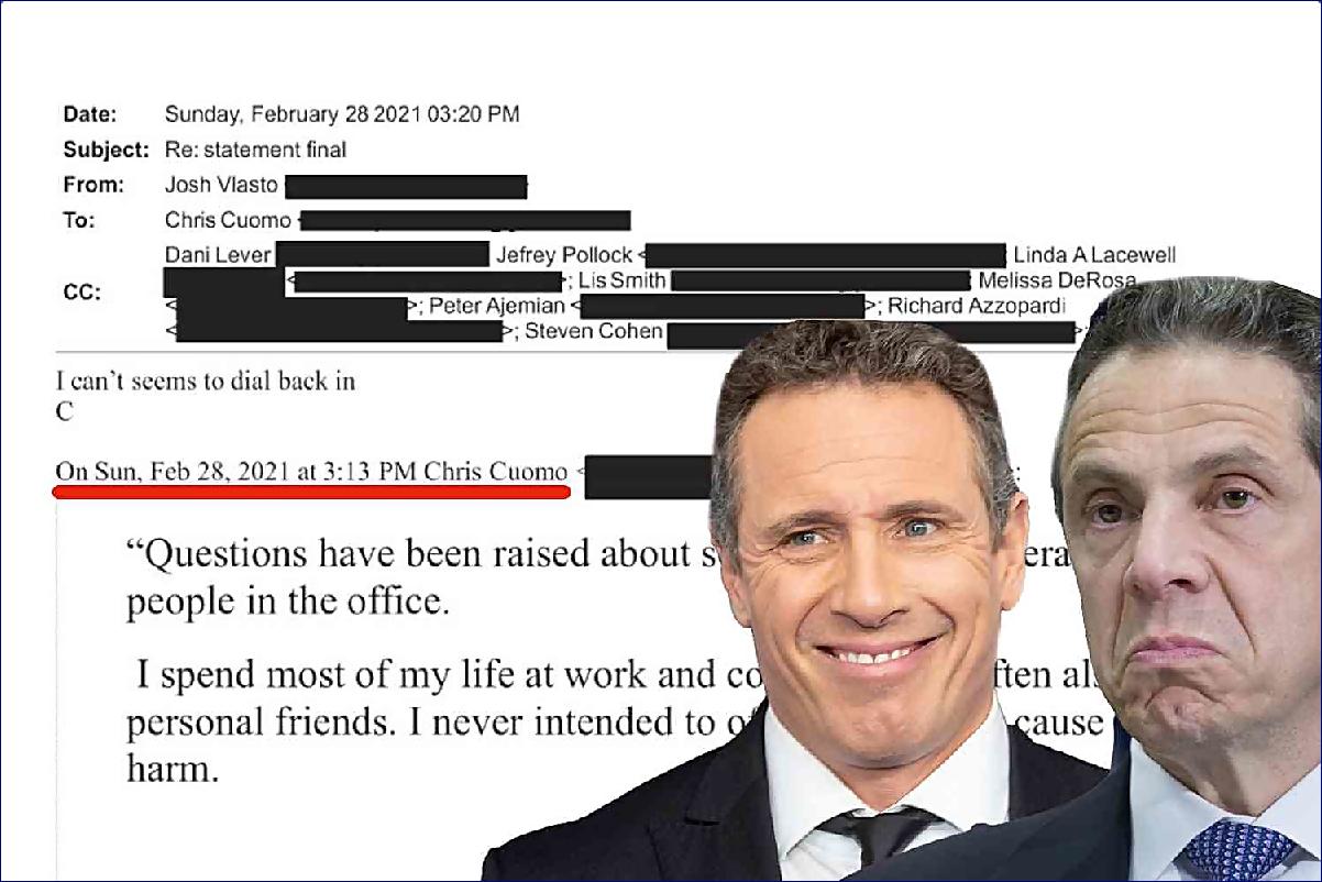 Když se provalily sexuální skandály jeho bratra, Chris Cuomo prohlásil, že se této záležitosti nebude věnovat, aby se vyhnul etickým problémům. Ukázalo se však, že během práce posílal ze svého počítače v CNN emaily s návrhy vět, které by měl jeho bratr použít ve své obranné řeči.