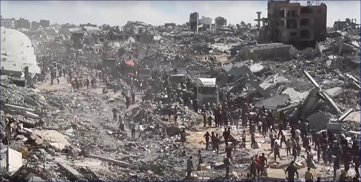 Moderátor: Před chvílí jsem hovořil se Samem Rosem, prozatímním ředitelem UNRWA v Gaze. Jedná se o agenturu OSN, která poskytuje palestinským uprchlíkům vzdělání, zdravotní péči a jídlo, ale na začátku tohoto roku byla Izraelem fakticky uzavřena, obvinil ji z předpojatosti. Zeptali jsme se ho, zda to znamená, že agentura obnoví svou roli hlavního poskytovatele pomoci v Gaze, když je nová dohoda na místě a čeká 5 000 nákladních vozů s pomocí. A znamená to konec kontroverzní Humanitární nadace v Gaze?