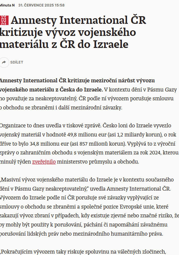 Příloha 3 Amnesty International – ČR vývozem zbraní z ČR do Izraele porušuje smlouvu o obchodu se zbraněmi i další mezinárodní závazky, publikováno v DeníkuN