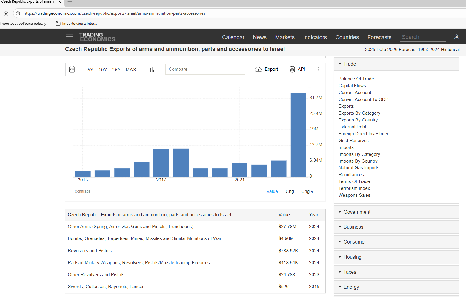 Příloha 4 Trading Economics Zbraně z ČR do Izraele