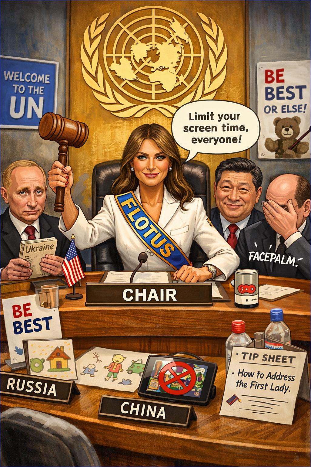 Jen ta představa, že první dáma předsedá orgánu, který obvykle řídí velvyslanci a ministři, působí... netradičně. Americké křeslo v OSN tradičně zastává velvyslanec při OSN — v současnosti Mike Waltz — který zjevně přivítal tuto změnu s nadšením.