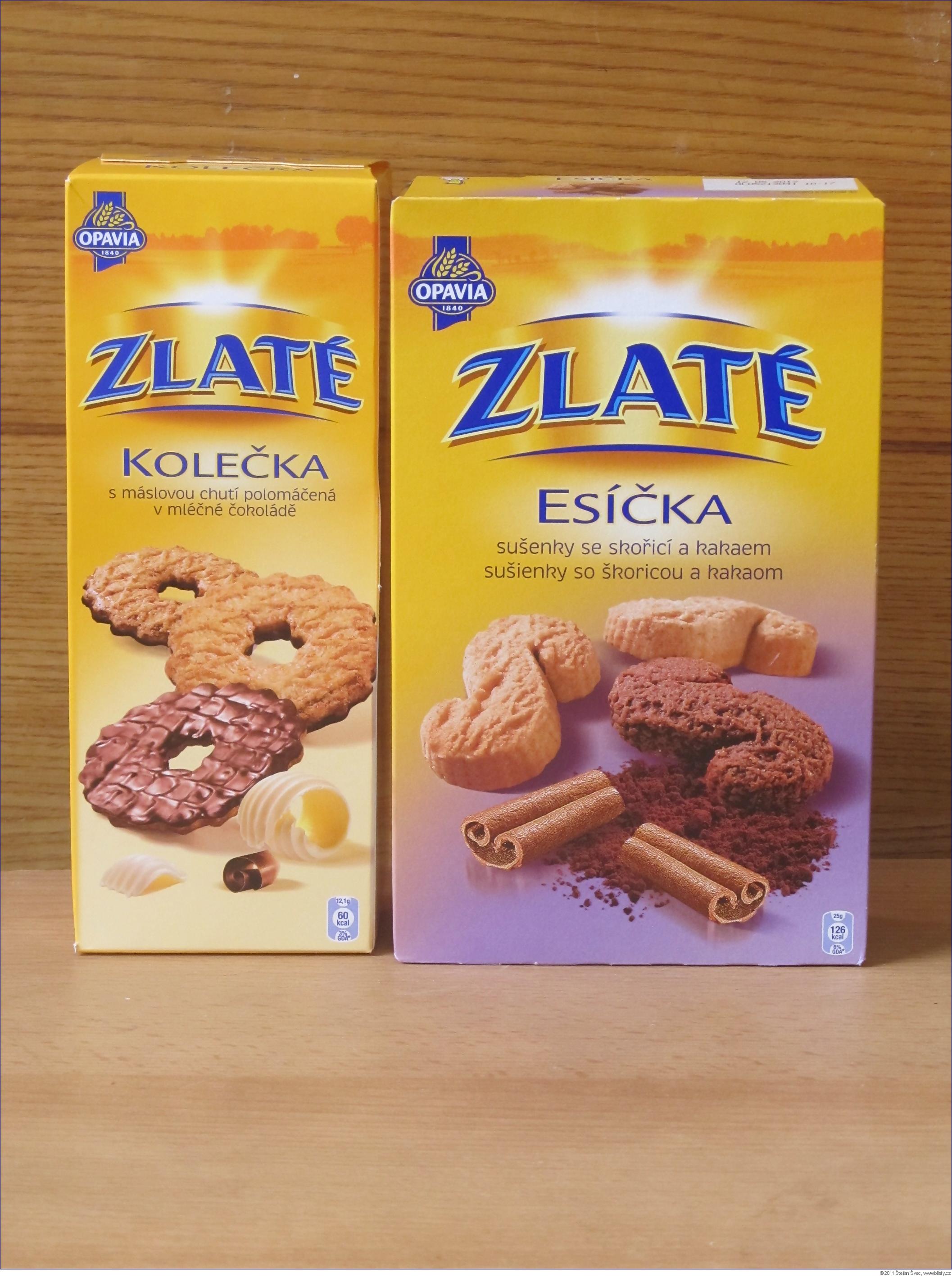 Někteří reklamní pracovníci neovládají ani základní český (a nejspíš ani slovenský) pravopis, takže nevědí, že je-li název výrobku ve středním rodě (kolečka, esíčka) přídavné jméno před ním musí být také ve středním rodě (zlatá). Bez ohledu na to, že logo "Zlaté" má asi odkazovat na hlavní produkt výrobce, Zlaté oplatky, vypadá takto vyvedený obal sušenek jako dílo retardovanějšího žáka prvního stupně základní školy. To to v Opavii opravdu nikomu nedochází?